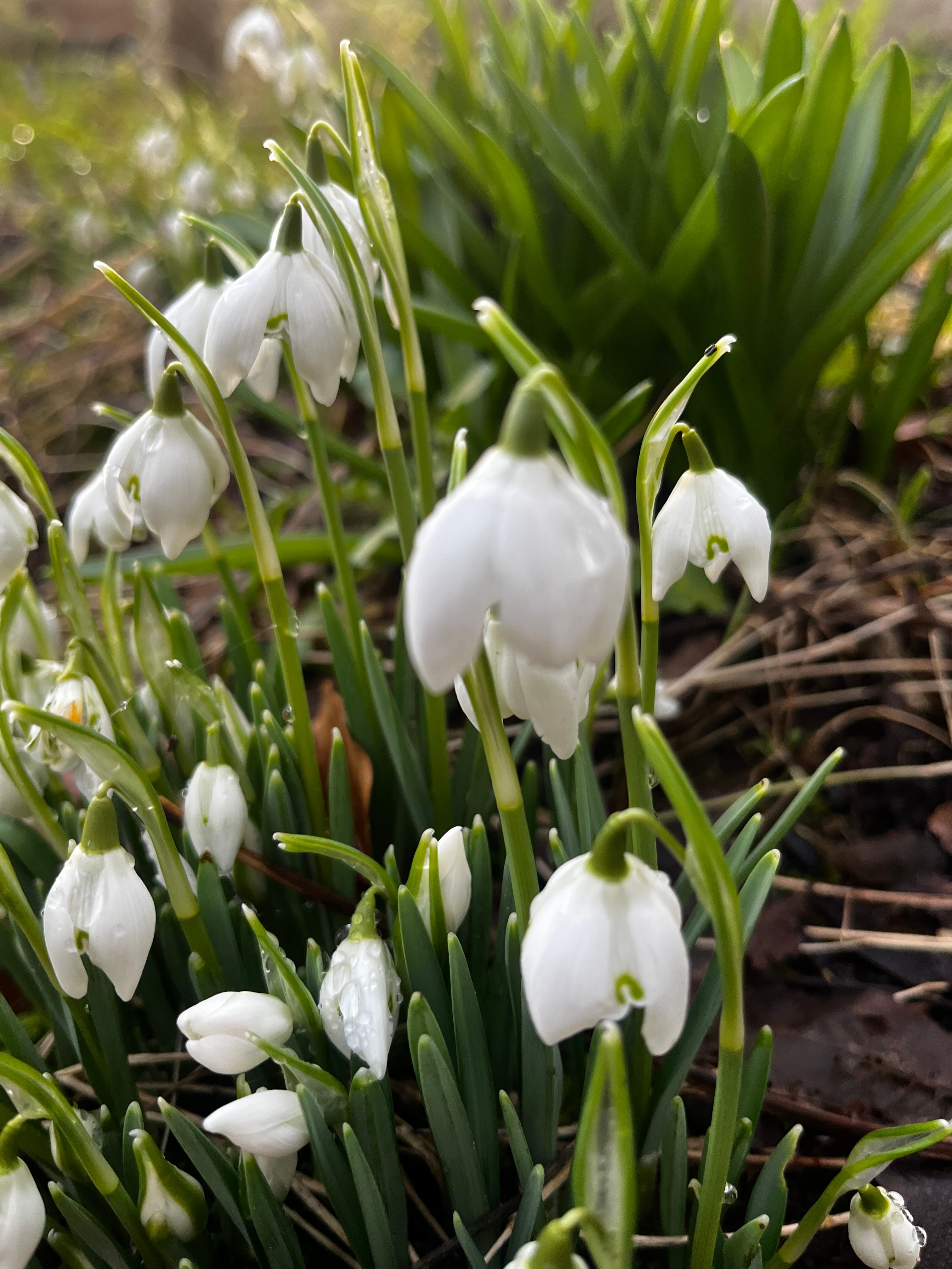 Snowdrops, an emblem of Brighid returning as maiden of spring, blooming in my garden